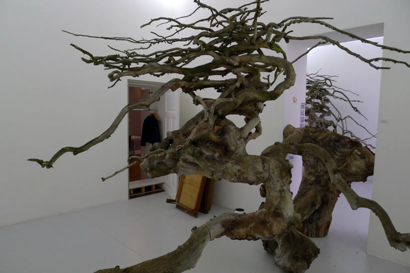 For the second version of this piece I was looking for the same species of tree. The only good one I found was far from Berlin and way too big to be hung from the gallery's ceiling. But it was so beautiful that it made me change idea instead of continuing to search for another tree. |